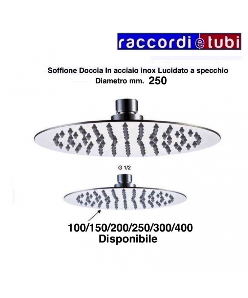 Soffione in acciaio inox lucido Spessore 6 mm getti in silicone soffice autopulente anticalcare "non ispezionabile"