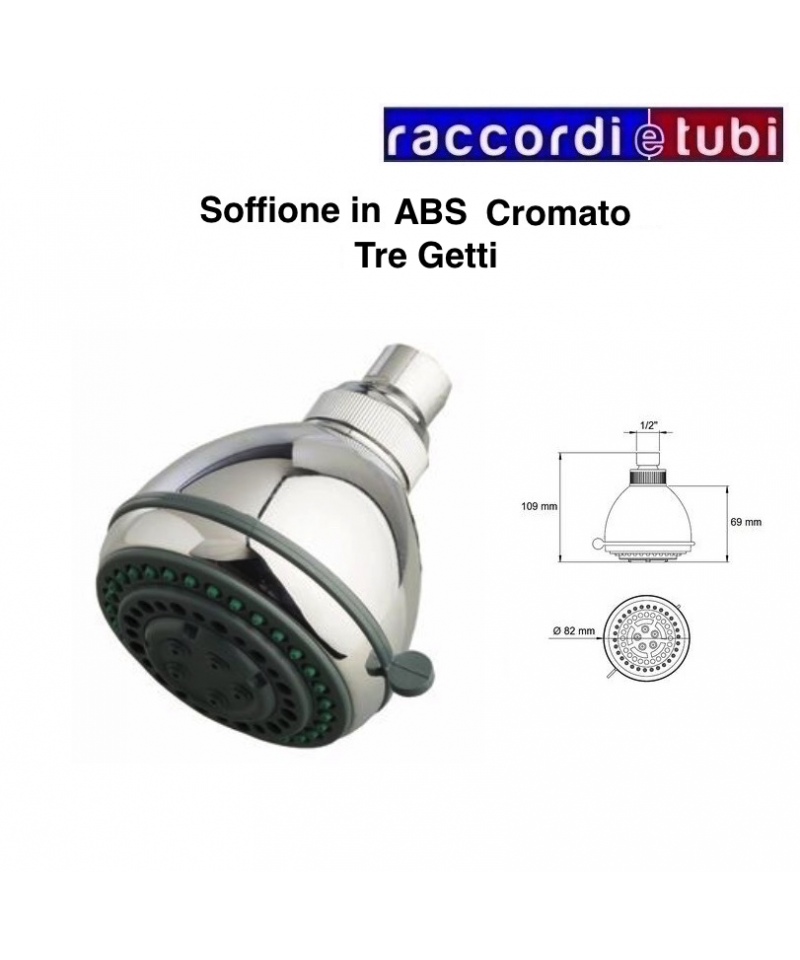 SOFFIONE IN ABS CROMATO GRETA 3 GETTI PORTATA 10 LITRI AL MINUTO