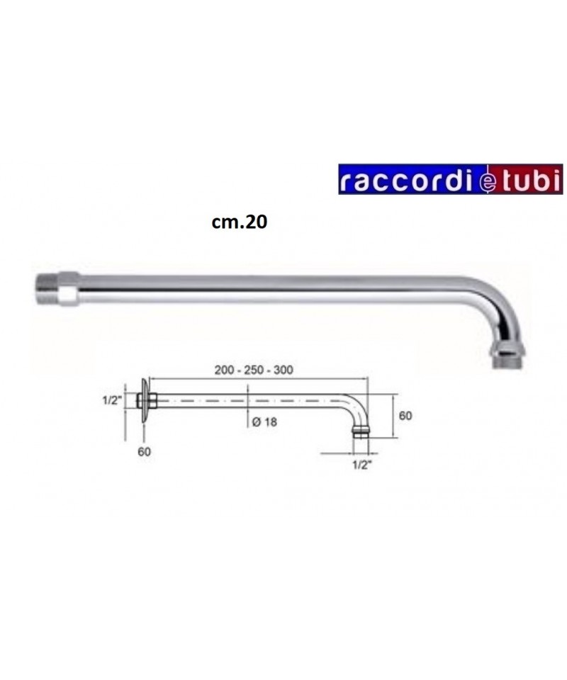 BRACCIO DOCCIA IN OTTONE LUNGHEZZA 20cm DIAMETRO TUBO MM.18