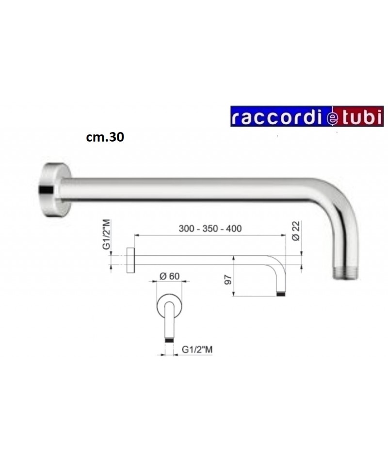 BRACCIO DOCCIA IN OTTONE LUNGHEZZA 30cm DIAMETRO TUBO MM.22