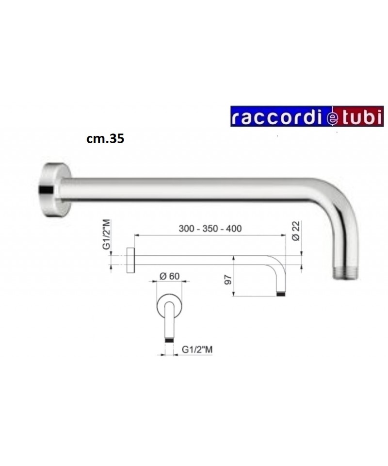BRACCIO DOCCIA IN OTTONE LUNGHEZZA 35cm DIAMETRO TUBO MM.22