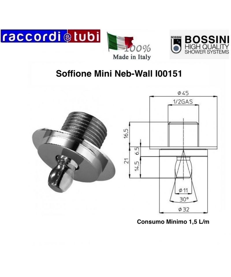 completamente in ottone PESANTE cromato, con 144 getti in silicone soffice autopulente anticalcare