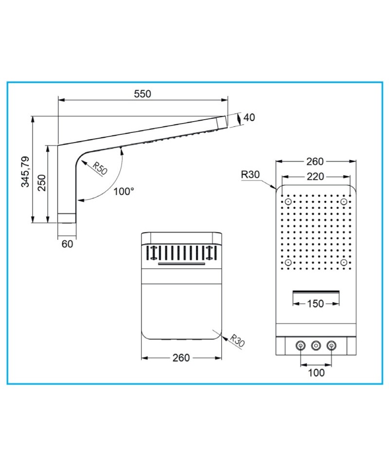 Con questo soffione a muro, dalle forme ergonomiche e moderne,consente ad ognuno di scegliere la modalità doccia più adatta alle proprie esigenze: • la modalità nebulizzazione, che con un delicatissimo rilascio di migliaia di gocce d’acqua rinfresca o riscalda il corpo, per un momento di puro benessere; • la modalità pioggia, per una doccia tranquilla e rilassante grazie ai 140 ugelli flessibili in silicone; • la modalità cascata, per massaggiare il corpo in modo delicato e naturale. E’ anche adatto a sostituire un normale braccio doccia con soffione, senza la necessità di eseguire opere murarie. Realizzato in robusto acciaio inox, è dotato di tecnologia anticalcare che facilita la pulizia. Come tutti i NOSTRI prodotti è progettato per garantire lunga durata ed efficienza. Misura 555 x 300 mm