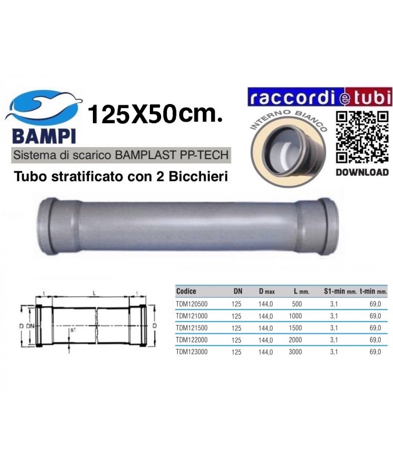 Tubi stratificati in PP-H/MD/PP-H e raccordi in PP-H/MC. I materiali che compongono il sistema BAMPLAST PP-TECH sono completamente riciclabili e realizzati in assenza di alogeni, cadmio e metalli pesanti.