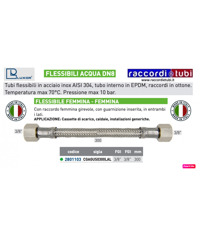 pressione MAX 10 bar 3/4-1" Max Temperatura 110°