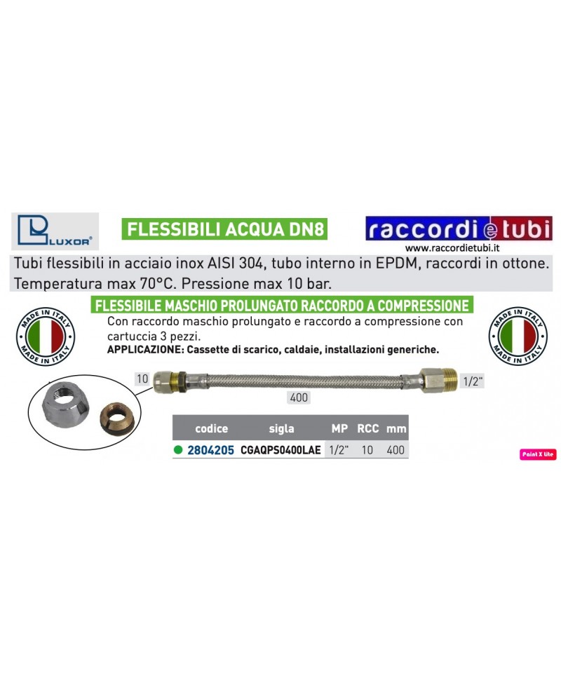 FLESSIBILE MASCHIO PROLUNGATO RACCORDO A COMPRESSIONE