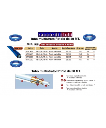 Sistema di tubi multistrato PE-RT/Al/PE-RT per la distribuzione di acqua calda e fredda ad uso sanitario, per gli impianti di riscaldamento a basse ed alte temperature. Il tubo multistrato è composto da 5 strati: