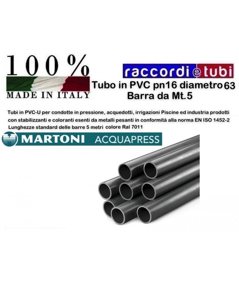Tubi in PVC-U PN/16 per condotte in pressione, acquedotti, irrigazioni Piscine ed industria prodotti con stabilizzanti