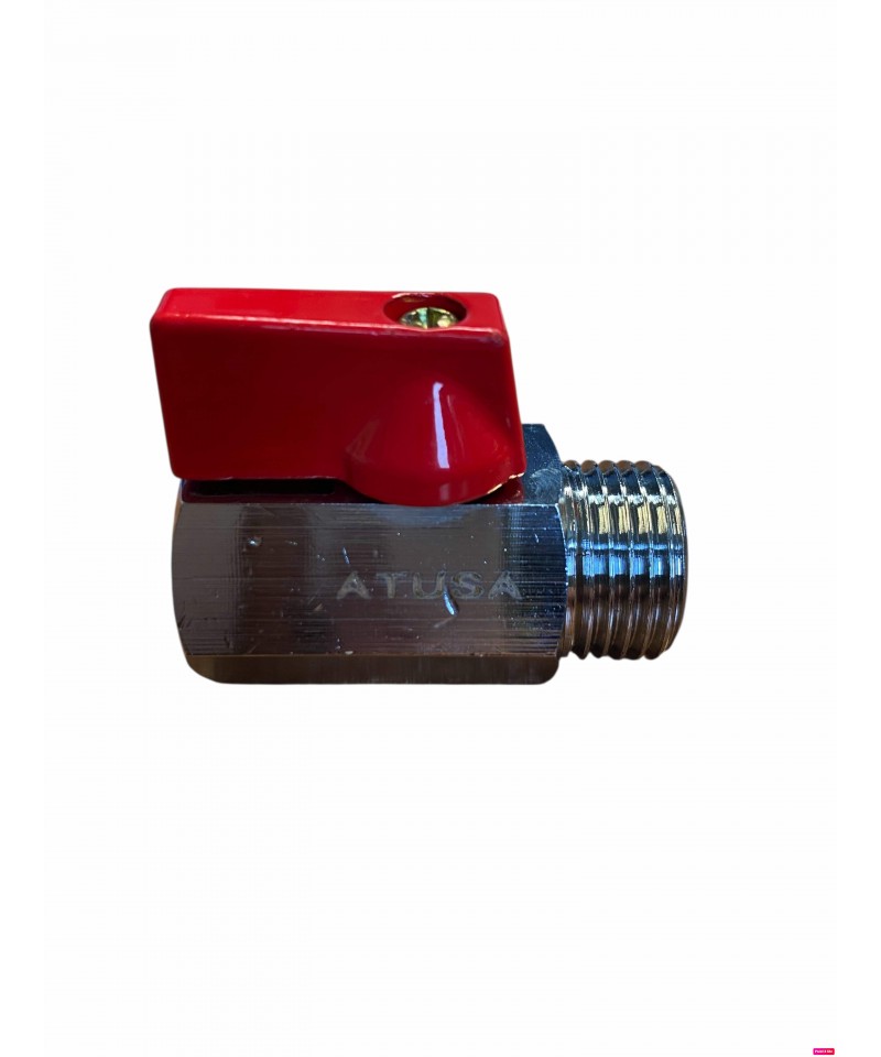 Valvola a farfalla in ottone con Bocchettone ,a passaggio totale M/F con leva corta e sistema di regolazione del flusso