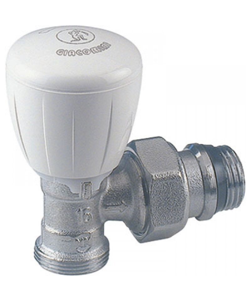 Valvola LadyFAR serie TOP a squadra termo statizzabile finitura lucida cromata o bianco-cromata per radiatori predisposta per il montaggio di dispositivi termostatici o elettrotermici, con attacco per tubo rame, plastica e multistrato, codolo con guarnizione in EPDM, tenuta tra codolo e corpo valvola in HPF, perno intercambiabile in acciaio inox con doppio o-ring di tenuta, volantino in metallo e completa di calotta cromata. Temperatura max di esercizio 95°C. Pressione max d’esercizio 10 bar.