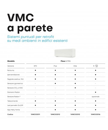 Helty FlowEASY è un sistema di ventilazione meccanica controllata puntuale che estrae l’aria viziata dagli ambienti indoor ed immette aria nuova, ossigenata e pulita grazie agli speciali filtri F7+G4 di serie. Le dimensioni molto compatte di Helty FlowEASY lo rendono adatto per l’inserimento anche in spazi ridotti. Ideale per un retrofit senza pensieri. FlowEASY è pensato per portare i vantaggi e il comfort della VMC a doppio flusso continuo in singoli ambienti di edifici già abitati, dove è necessario garantire un adeguato ricambio di aria, anche di notte grazie alla modalità notturna.